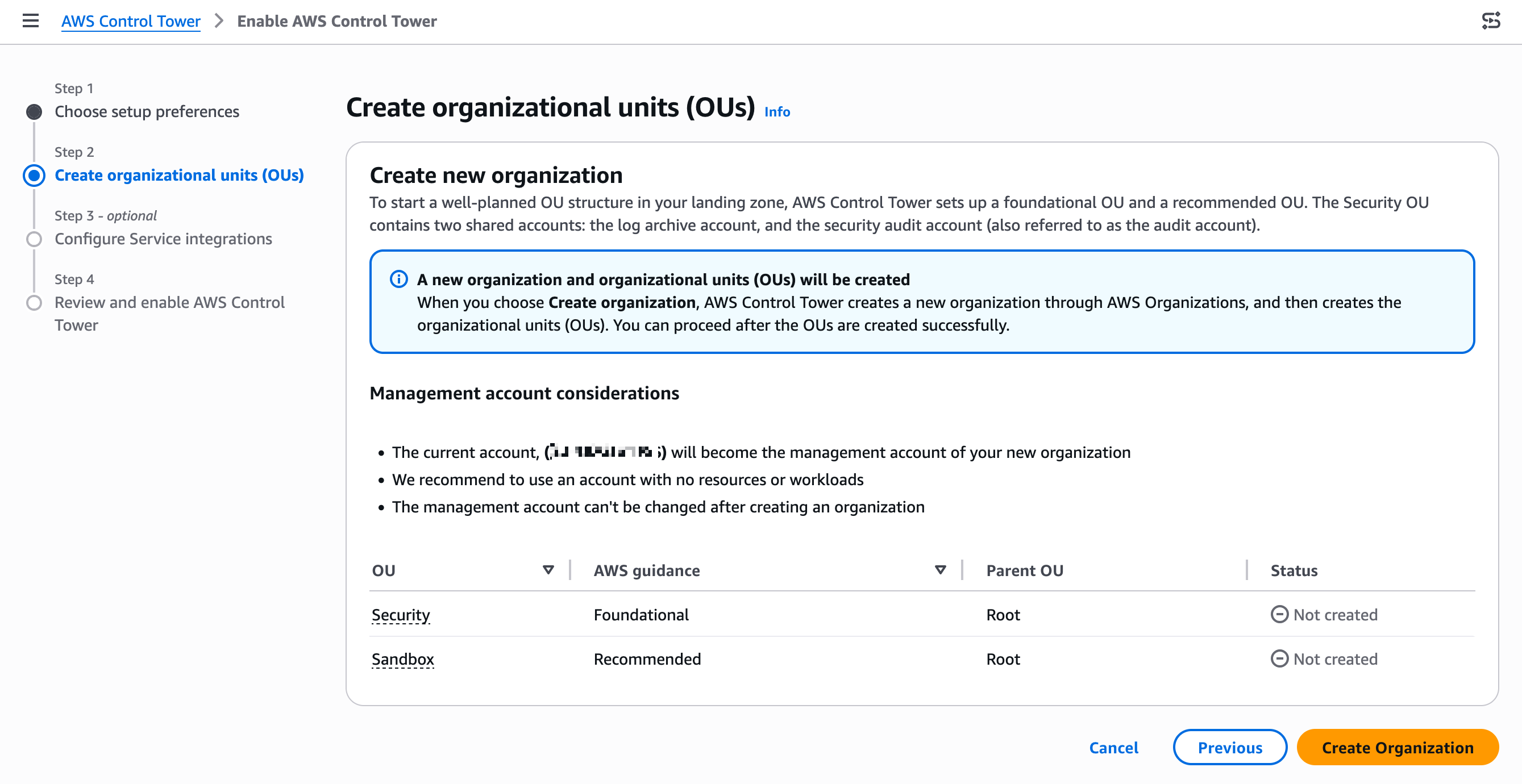 You don't have permissions to see this resource, because the management account has not granted you the permissions to view accounts.