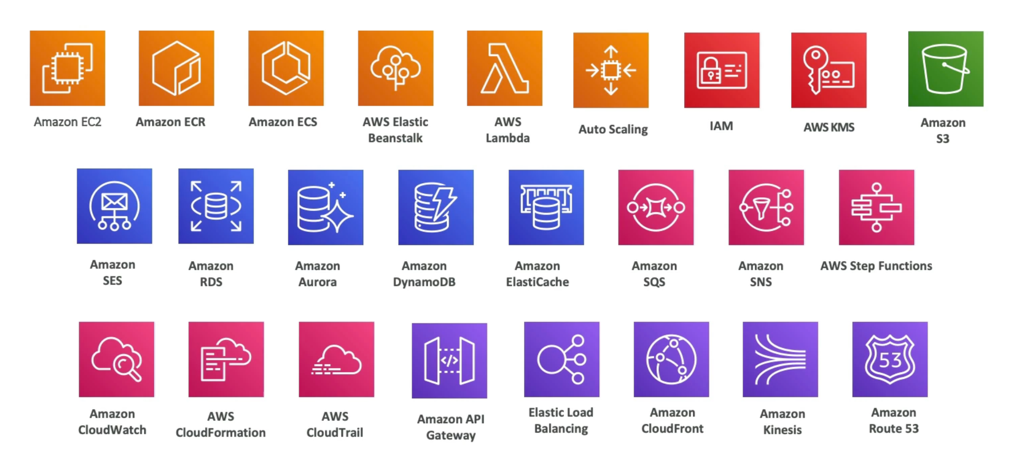 CloudFront: 뛰어난 성능, 보안 및 개발자 편의를 위해 구축된 콘텐츠 전송 네트워크(CDN) 서비스 CloudWatch: 온프레미스 및 기타 클라우드에서 리소스 및 애플리케이션을 관측하고 모니터링 CloudTrail: AWS와 하이브리드 및 멀티클라우드 환경에서 사용자 활동과 API 사용량 추적 Snowball: 페타바이트 규모의 데이터를 AWS로 마이그레이션 Aurora: 기본 제공 보안, 연속적인 백업, 서버리스 컴퓨팅, 최대 15개의 읽기 전용 복제본, 자동 다중 리전 복제 및 다른 AWS 서비스와의 통합을 제공 Redshift: SQL을 사용하여 여러 데이터 웨어하우스, 운영 데이터베이스 및 데이터 레이크에서 정형 데이터 및 반정형 데이터를 분석하고 AWS가 설계한 하드웨어 및 기계 학습을 사용해 어떤 규모에서든 최고의 가격 대비 성능을 지원 Kinesis: 모든 규모의 스트리밍 데이터를 비용 효율적으로 처리하고 분석하는 완전관리형 서비스 Glacier: 최저 비용과 밀리초 단위의 액세스로 데이터를 보관할 수 있는 안전하며 내구성 있는 장기 스토리지 클래스 Macie: 데이터 보안 및 데이터 프라이버시 서비스로서, 기계 학습(ML) 및 패턴 일치를 활용하여 민감한 데이터를 검색하고 보호 Inspector: 규모에 맞는 지속적인 자동 취약성 관리, Amazon EC2 인스턴스, 컨테이너 및 Lambda 함수와 같은 워크로드를 자동으로 검색하고 소프트웨어 취약성과 의도하지 않은 네트워크 노출이 있는지 스캔 Athena: 오픈소스 프레임워크에 구축된 서버리스 대화형 분석 서비스로 개방형 테이블과 파일 형식을 지원, 페타바이트 규모의 데이터를 상주 위치에서 분석하는 간소화되고 유연한 방식을 제공 FSx for Windows File Server: Windows Server에 구축된 완전관리형 공유 스토리지와 함께 다양한 데이터 액세스, 데이터 관리 기능을 제공 FSx for Lustre: 널리 사용되는 Lustre 파일 시스템의 확장성과 성능을 가진 완전관리형 공유 스토리지를 제공 Rekognition: 기계 학습을 통해 이미지 인식 및 비디오 분석을 자동화하고 비용을 절감 SageMaker: 완전관리형 인프라, 도구 및 워크플로를 활용하여 모든 사용 사례에 적합한 기계 학습(ML) 모델을 구축, 훈련 및 배포 Fargate: 컨테이너에 적합한 서버리스 컴퓨팅 Secrets Manager: 보안 암호의 수명 주기를 중앙에서 관리 Comprehend: 기계 학습을 사용하여 텍스트에서 유용한 인사이트 및 관계를 찾아내는 자연어 처리(NLP) 서비스 Glue: 분석, 기계 학습(ML) 및 애플리케이션 개발을 위해 여러 소스에서 데이터를 쉽게 탐색, 준비, 이동 및 통합할 수 있도록 하는 확장 가능한 서버리스 데이터 통합 서비스 Fargate: 컨테이너에 적합한 서버리스 컴퓨팅