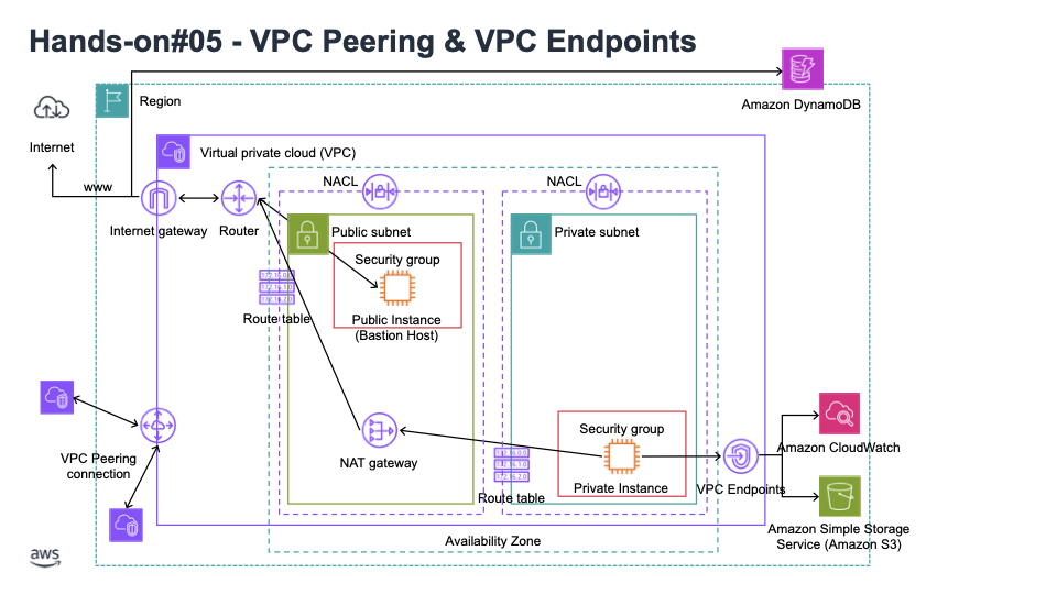 05. Route Tables: 네트워크가 VPC 내에서 흐르도록 하는 키, 수정됨, 인터넷 게이트웨이 경로들, VPC Peering connections, VPC Endpoints 등 포함