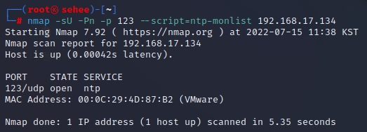 NTP의 경우 monlist 기능 비활성화(ntpdc -c monlist (NTP server add))