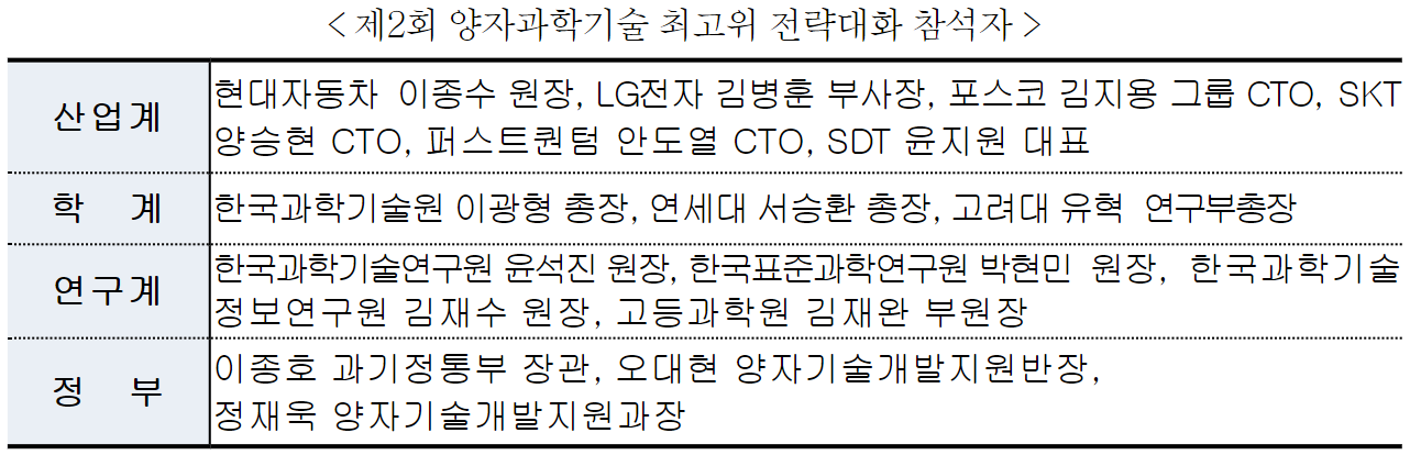 과학기술정보통신부와 외교부는 윤석열 대통령의 미국 국빈방문을 계기로 미래 국가 핵심전략기술로 주목받는 양자과학기술 분야에 대한 국가 차원의 전략적 협력체계와 협력확대 의지를 담은 '한-미 양자정보과학기술 협력 공동성명서' 서명을 통해 양자과학기술 선도국가 도약의 발판을 마련함