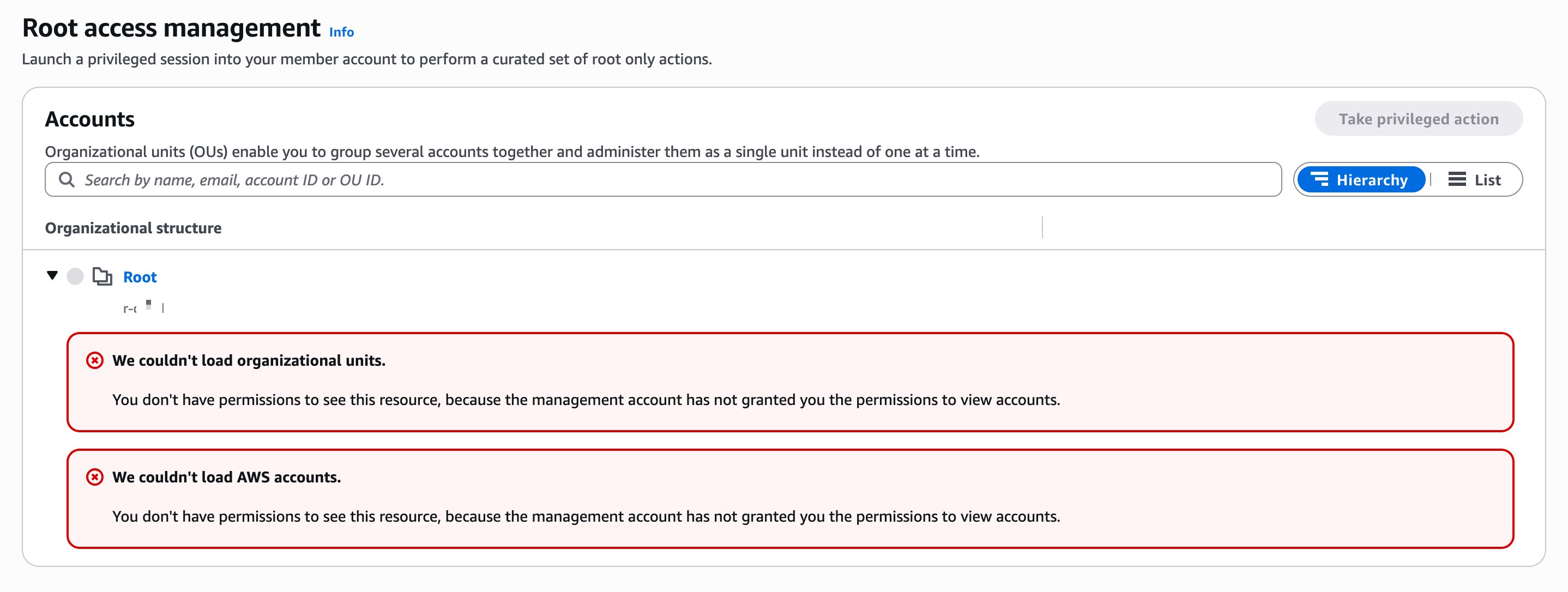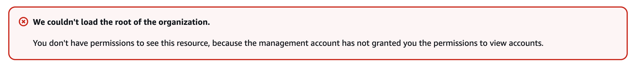 You don't have permissions to see this resource, because the management account has not granted you the permissions to view accounts.