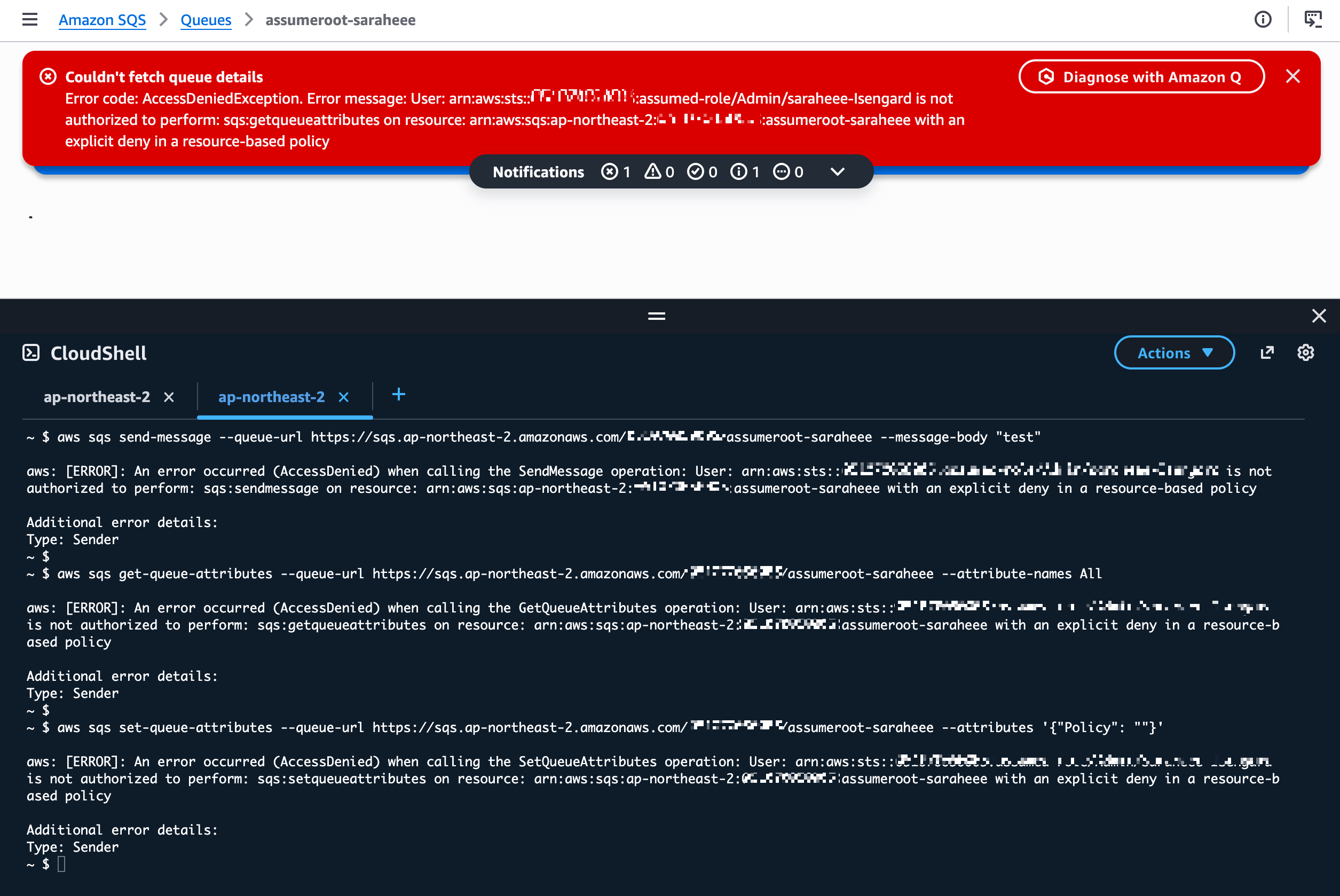 aws sqs get-queue-attributes --queue-url <https://sqs.ap-northeast-2.amazonaws.com/xxxxxxxxxxxx/assumeroot-saraheee> --attribute-names All