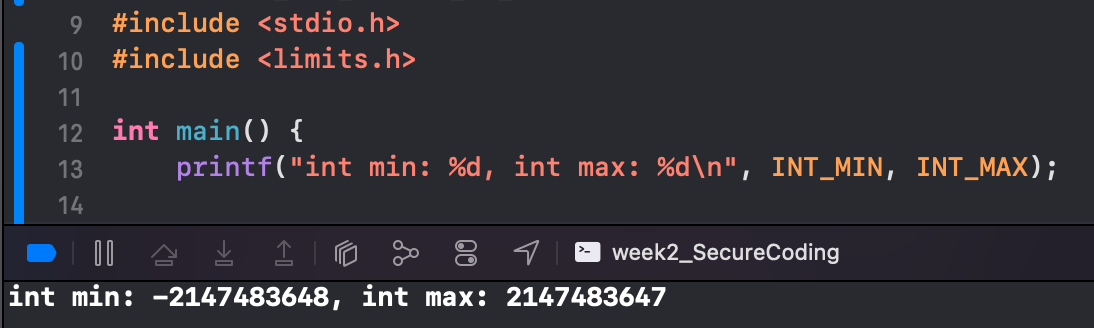 printf("int min: %d, int max: %d\n", INT_MIN, INT_MAX);