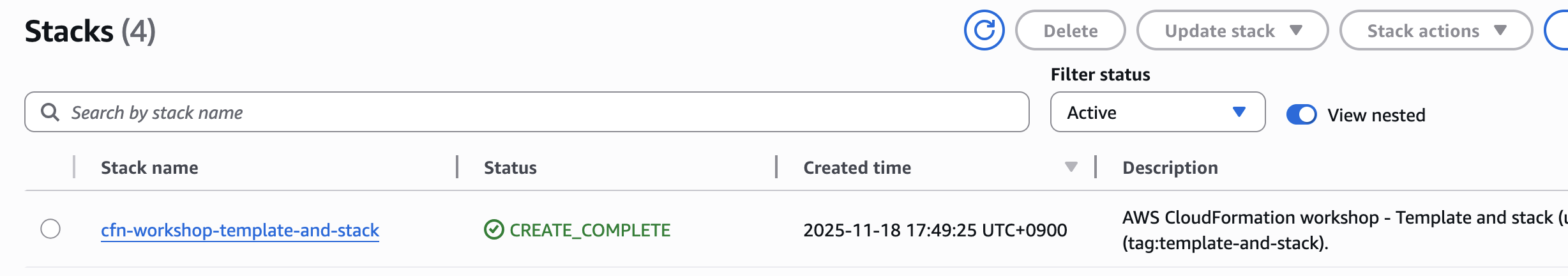 - 템플릿에서 변경된 내용을 반영하도록 스택을 업데이트