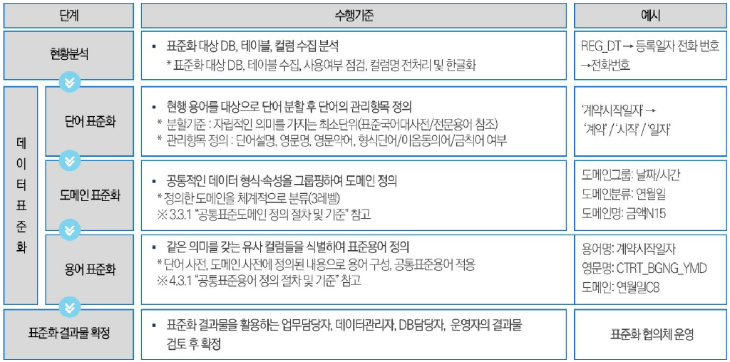 - 데이터 표준화는 다음 매뉴얼에 따라 실시할 수 있으며, 데이터 현황 분석을 진행해야 함