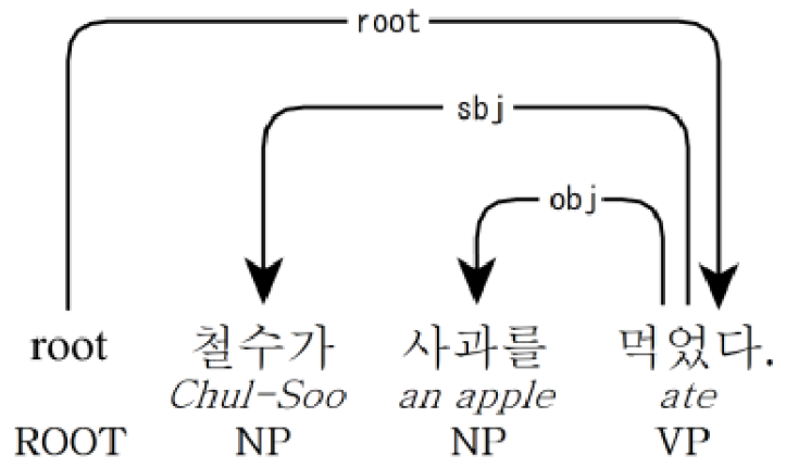 - 아래의 문법적 구조를 학습하여 통화/문자 내용 중 피싱으로 의심 가는 내용과 화자 간 발화 내용의 의도를 유추하거나 단어/문장 자체의 진위성을 대화 맥락 중 파악