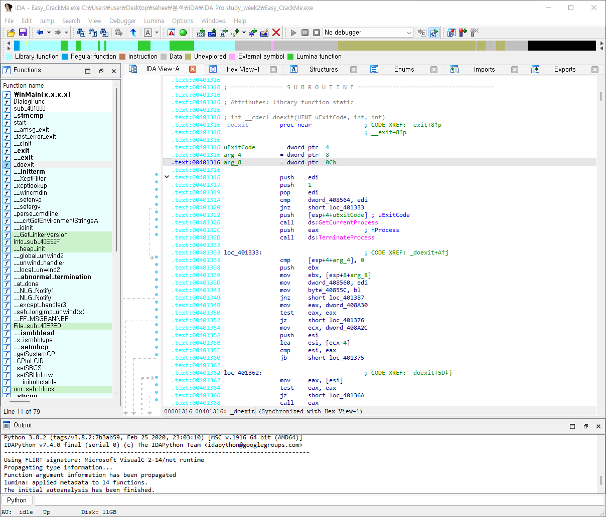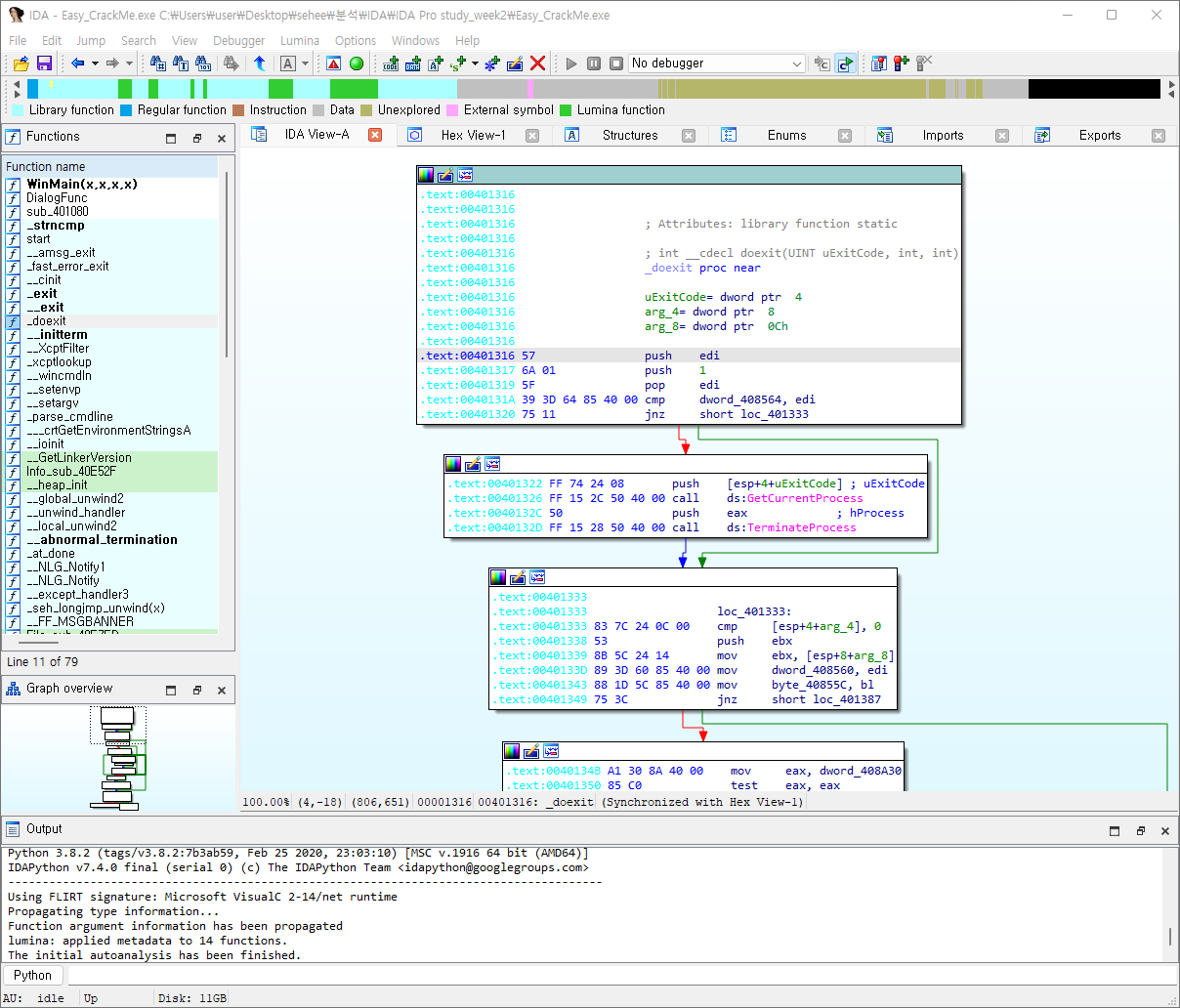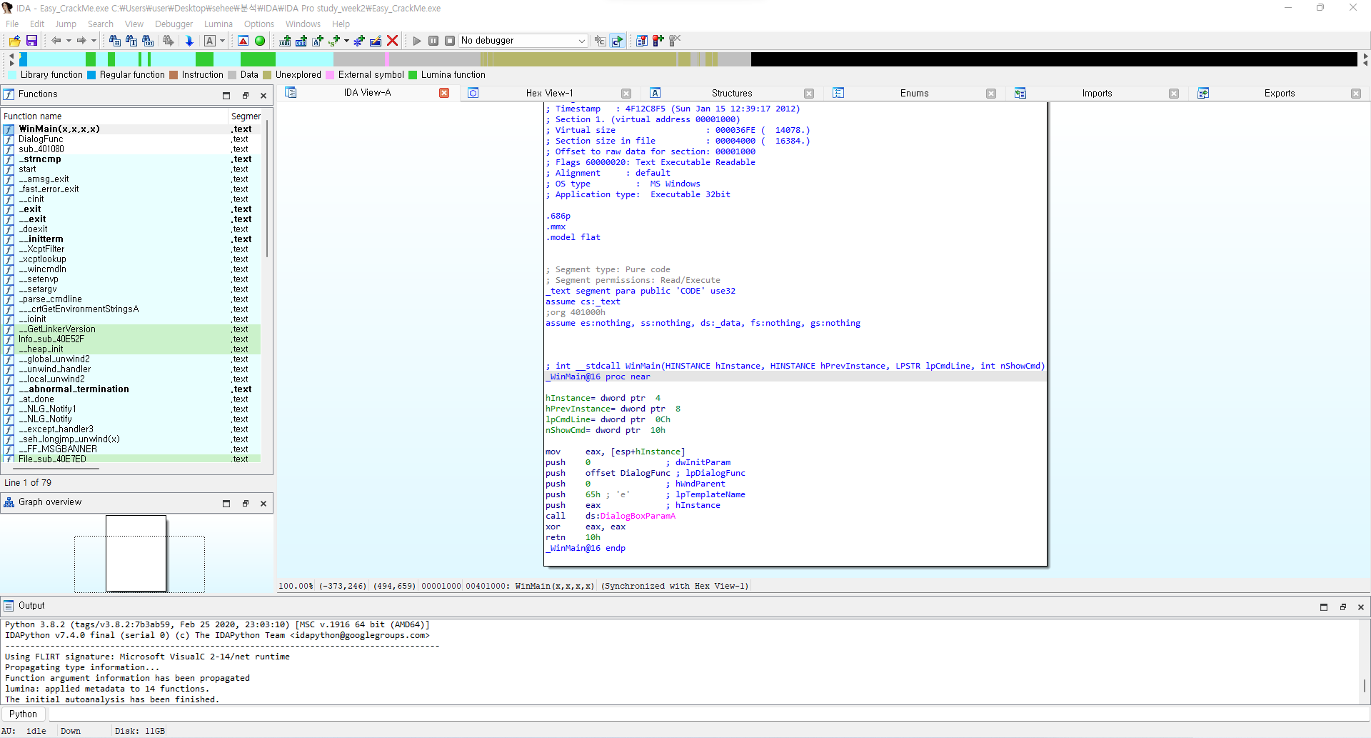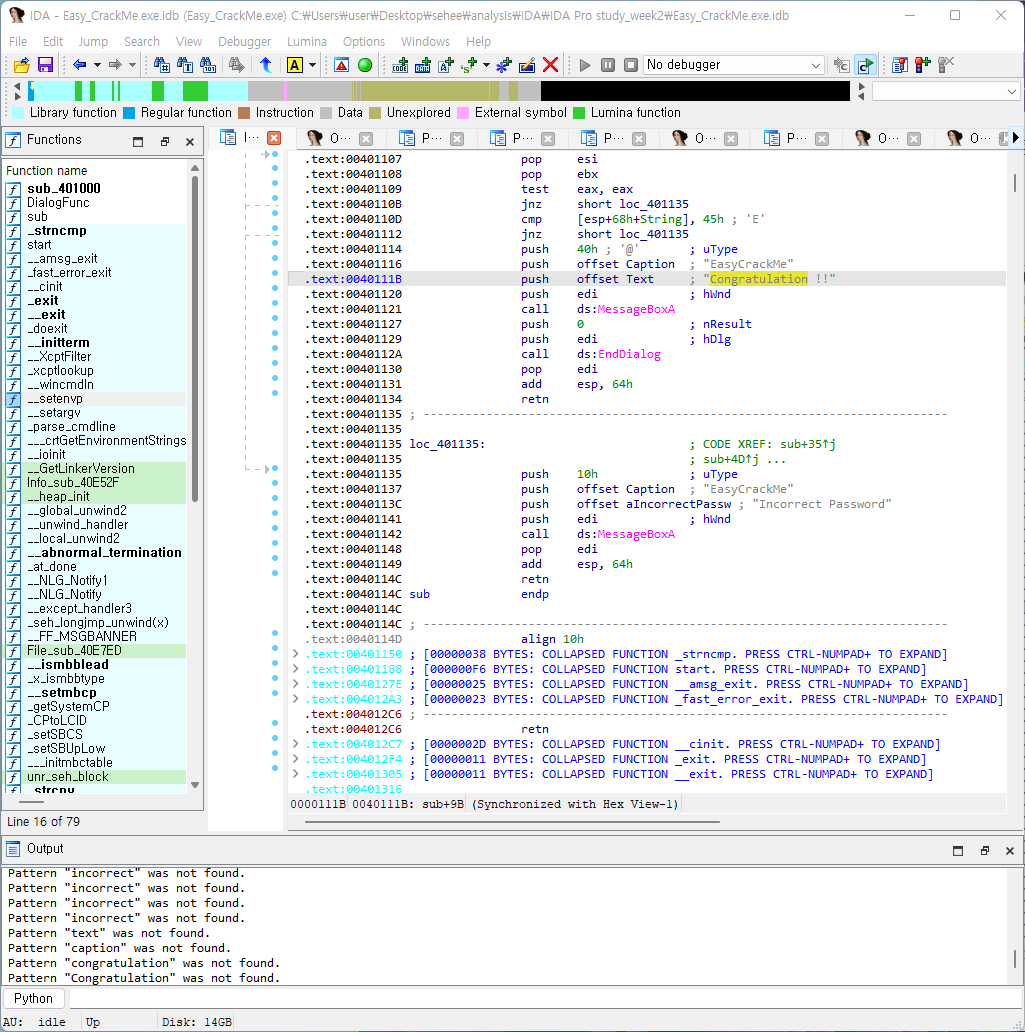 2022.07.04 - [IDA Pro] - IDA Pro 악성코드 정적분석 툴 사용법&실습 - week.03(Easy_CrackMe, Easy_KeygenMe) (1)