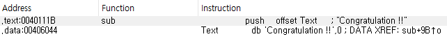Search > Text: 전체 디스어셈블리 윈도우에서 특정 문자열 검색