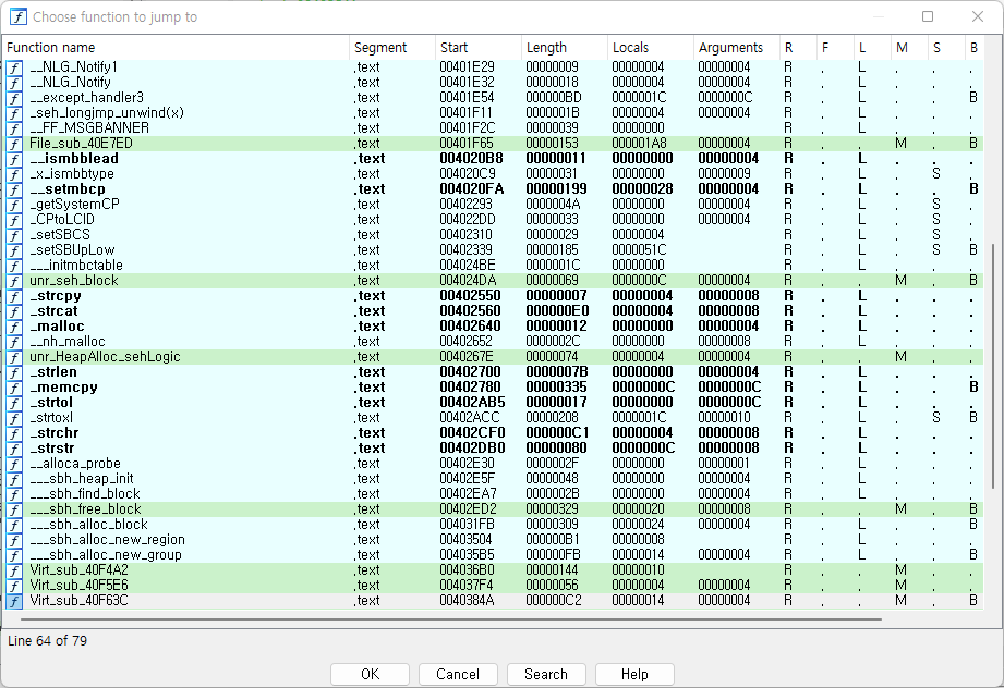하늘색: FLIRT로 인식한 라이브러리 코드 (COLLAPSED FUNCTION)