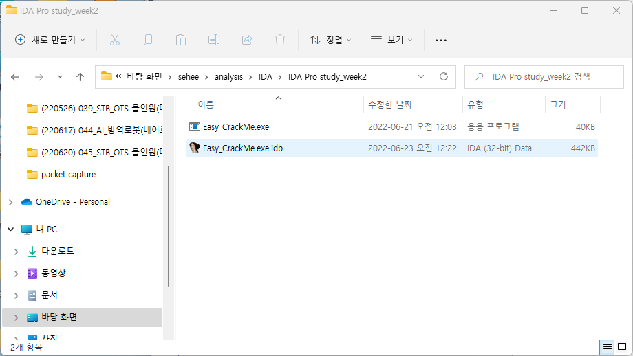 - 샘플 파일을 이용하여 IDA Pro 실행