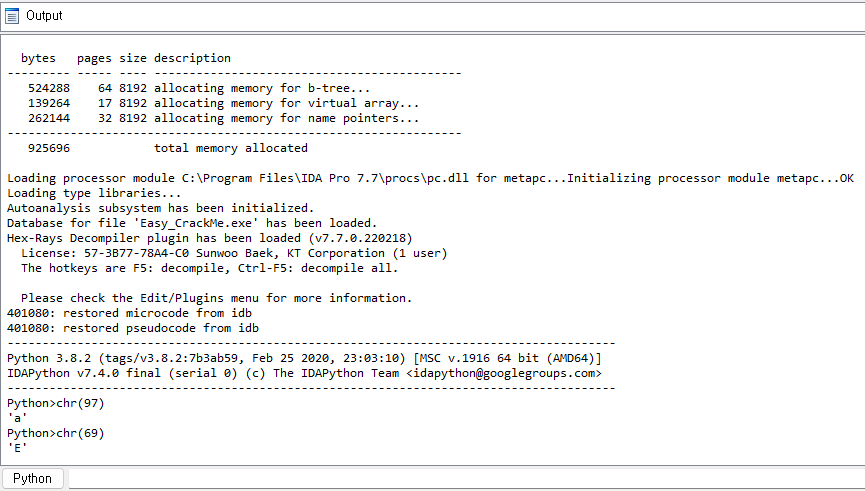 | [IDA Pro] 악성코드 정적분석 툴 사용법&실습 - week.03(Easy_KeygenMe) (2) | 2022.07.04 |